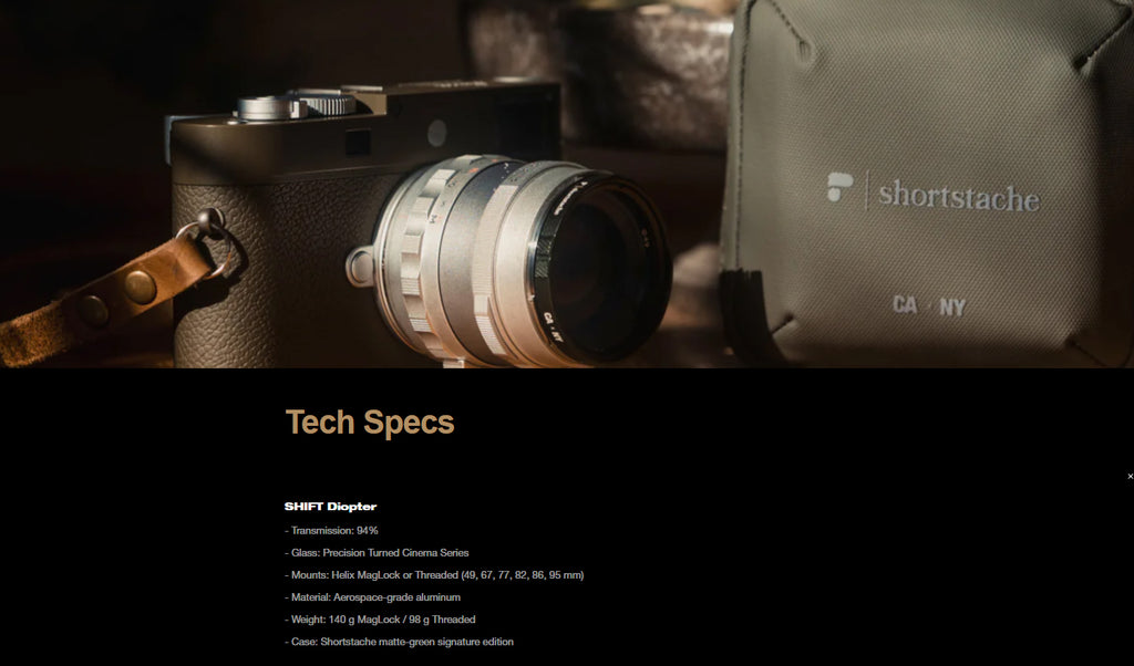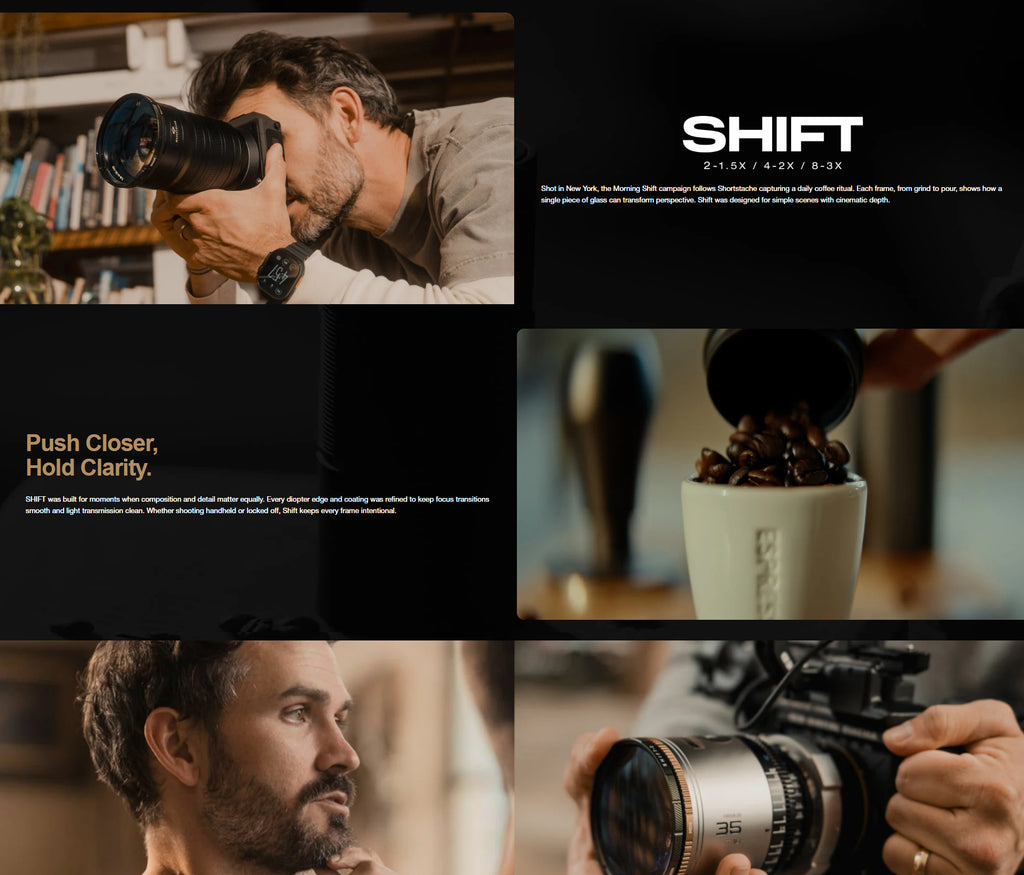 The Shift Diopter | Shortstache Edition is a precision-built close-focus filter system created for photographers and filmmakers who want cinematic detail without changing lenses. Co-developed with Shortstache, Shift transforms simple setups into expressive, textured storytelling.