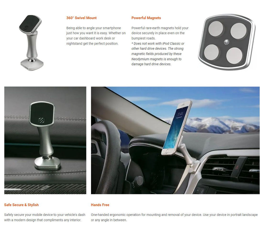 - Dual magnetic heads designed for mounting larger smartphones to most metallic surfaces