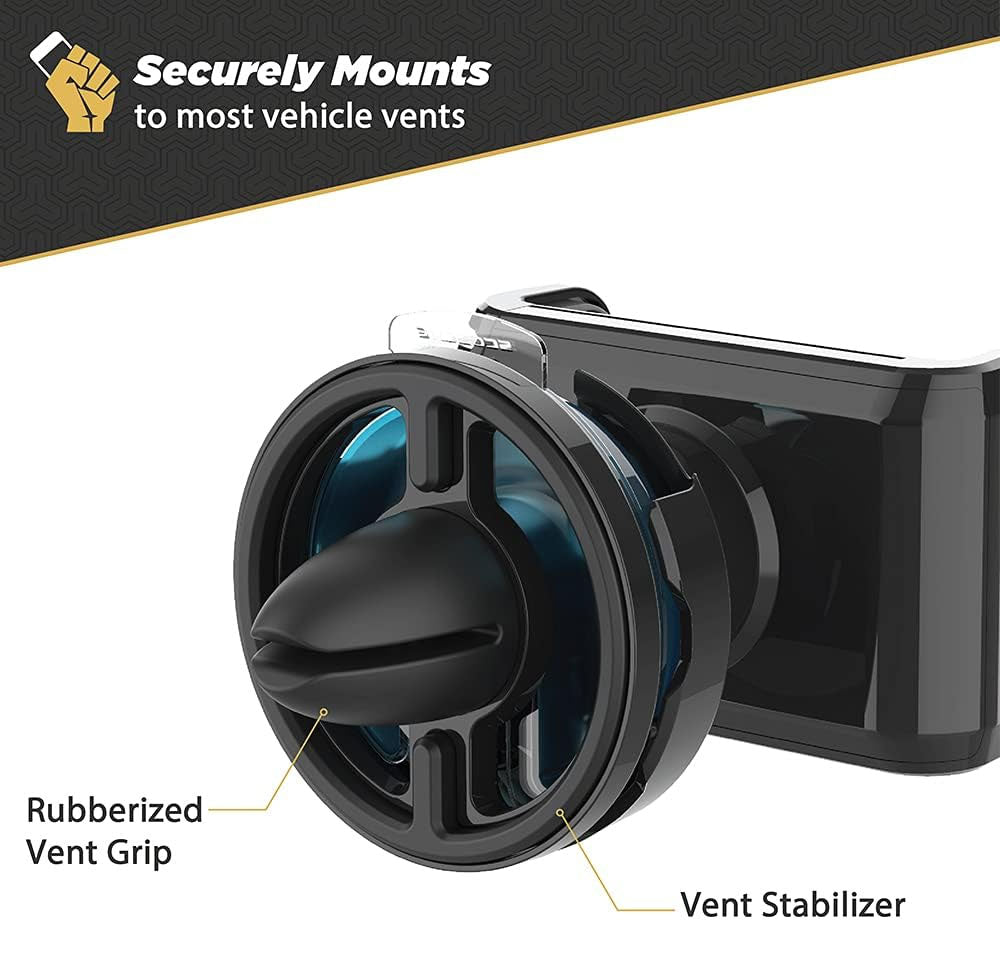 - Vent mount is quick and easy to install, remove, and transfer from vehicle to vehicle