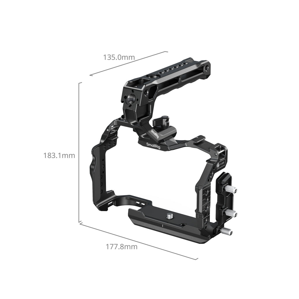 SmallRig Cage Basic Kit for Canon EOS R6 Mark III / R6 Mark II 5955 is designed to enhance handheld shooting stability, portability, and accessory expansion. The kit includes a cage, a USB-C & HDMI cable clamp, and a top handle.