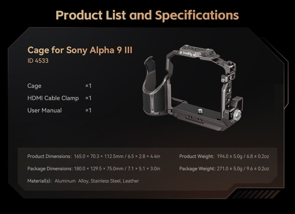 SMALLRIG CAGE FOR SONY ALPHA 9 III 4533