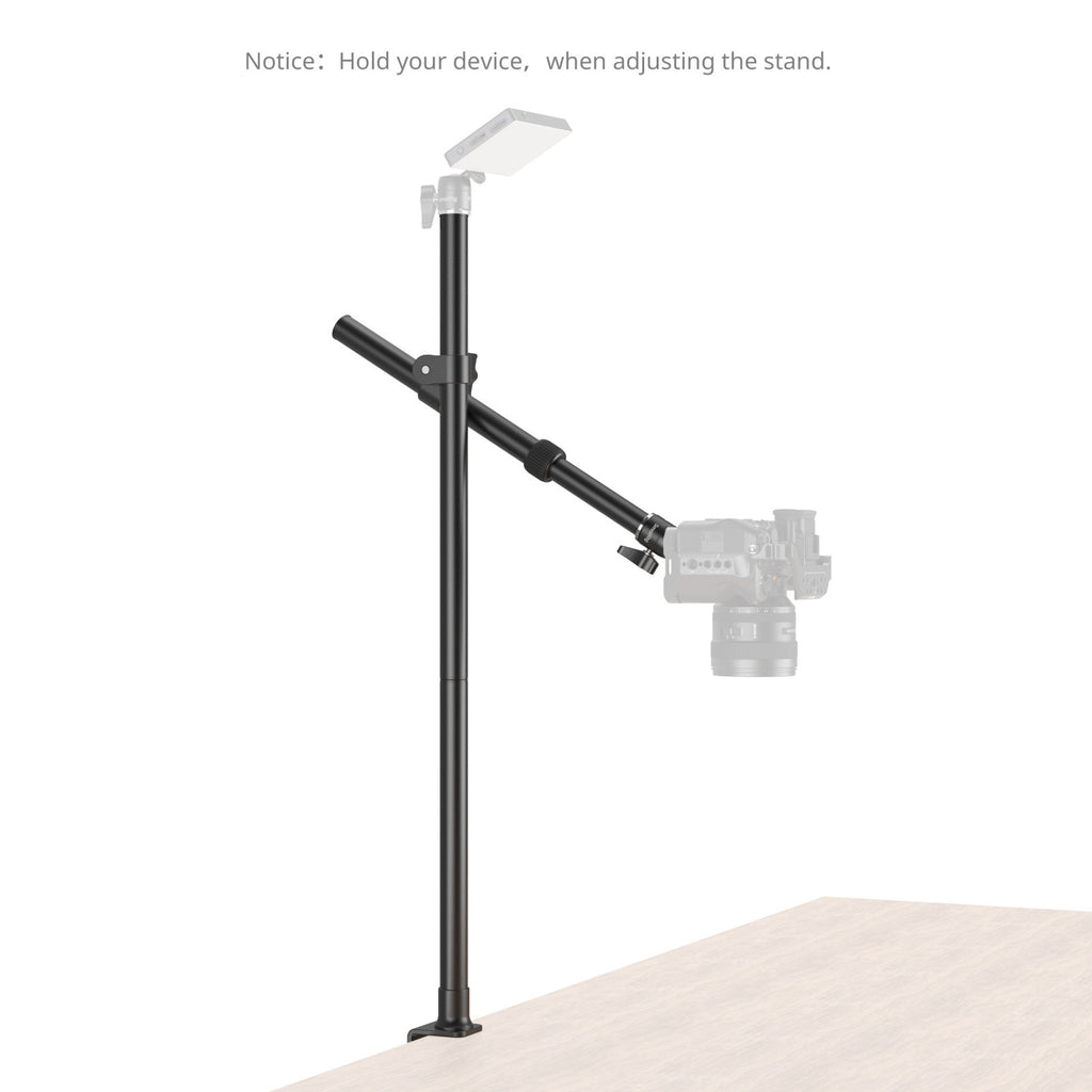 SmallRig Desk Mount Kit 4938B is designed to accommodate cameras, lights, microphones, and other equipment, suitable for indoor live streaming, desktop photography, video conferencing, and other scenarios requiring desktop shooting. The modular metal knobs on the stand allow for one-touch height and angle adjustment.