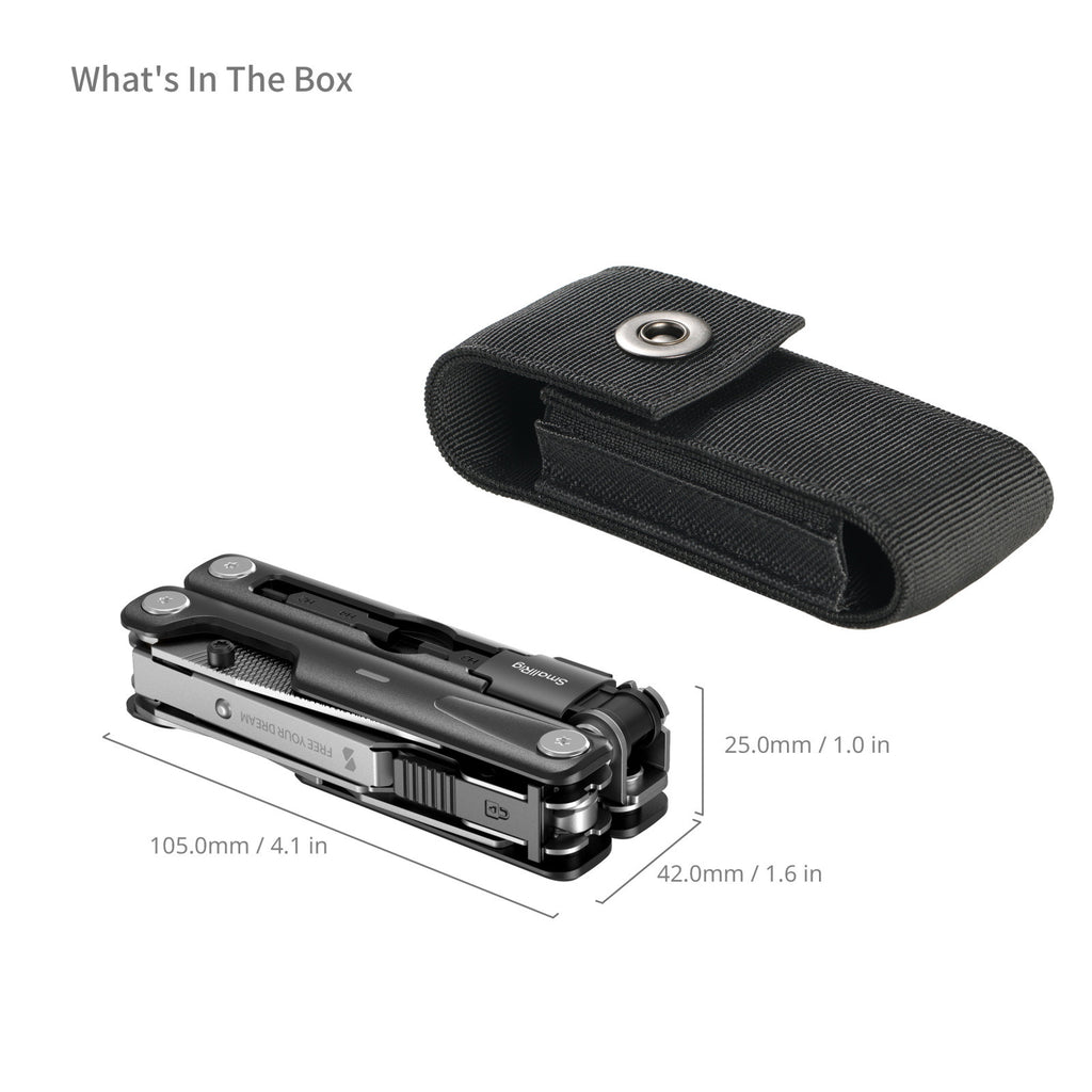 SmallRig EDC Multi-Tool 5294 is an all-in-one solution tailored for creators and filmmakers. It combines 16 essential tools into a single unit, including Allen wrenches (H2, H2.5, H3, H4), a flat wrench, a knife, scissors, a file, and pliers—crucial for on-the-go gear adjustments. The kit also incorporates everyday tools such as SL5 flat-head and PH1 Phillips screwdrivers, bottle and can openers, and a dual-scale (metric & imperial) ruler. Its integrated folding design consolidates a full toolbox into a pocket-sized kit, maximizing efficiency on location.