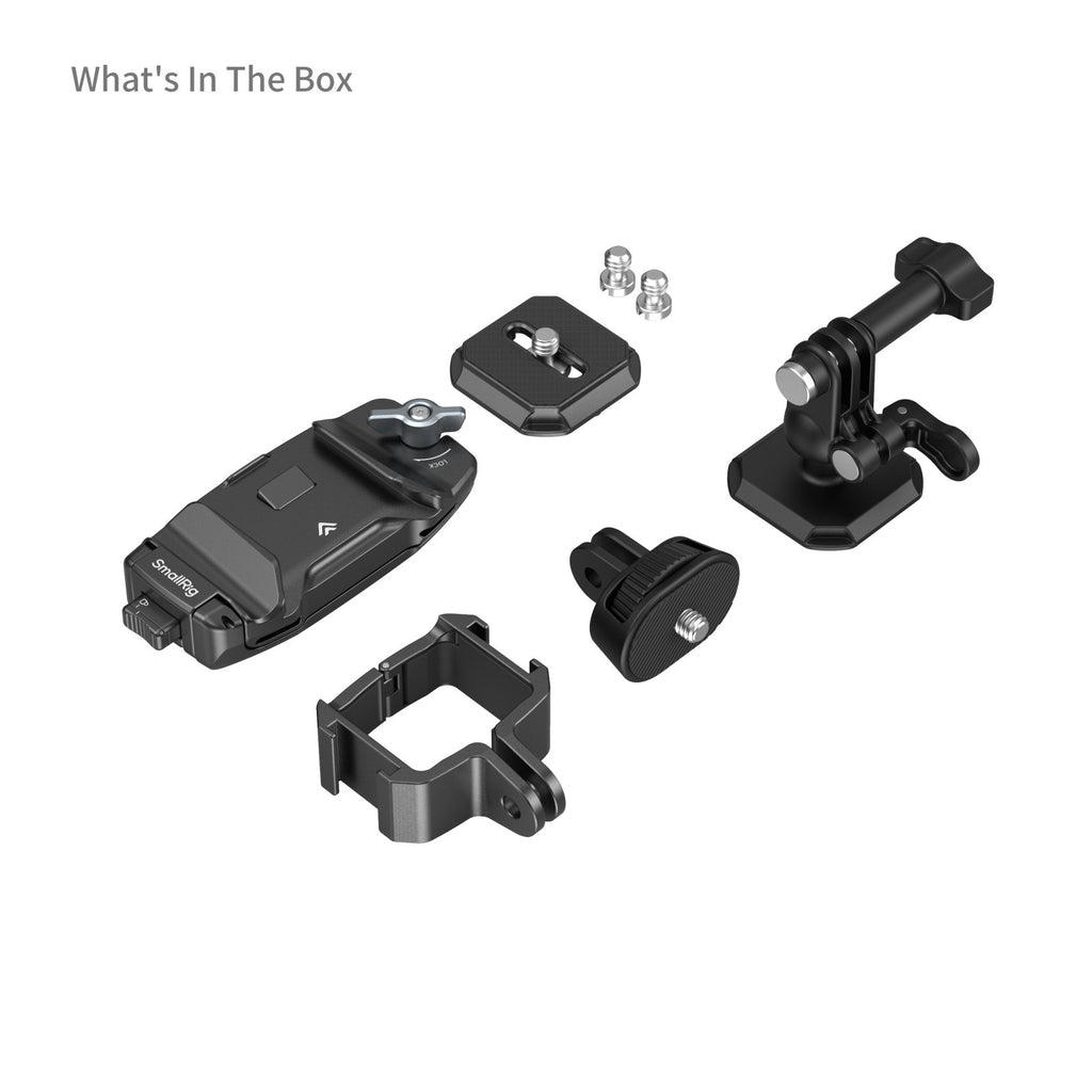 SmallRig Universal Backpack Clip Kit 5655 is a professional mounting solution for mirrorless and action cameras, allowing flexible attachment to backpacks, shoulder straps, belts, and more. Ideal for hiking, travel vlogging, or everyday use, it provides convenient camera access in any situation.