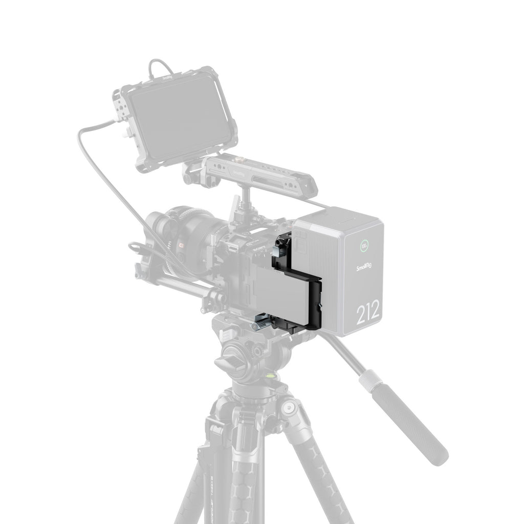 The V-mount battery plate features an Arca-Swiss quick release mechanism, allowing for quick attachment to cameras with tool-free locking and adjustment for rapid battery installation. The Arca-Swiss baseplate features an adjustable locking lever, ensuring compatibility with most Arca-Swiss quick release plates on the market and enabling direct slide-in attachment of cages and L-shaped handles equipped with built-in Arca-Swiss plates. Additionally, the baseplate is retractable to accommodate mirrorless cameras of varying sizes.