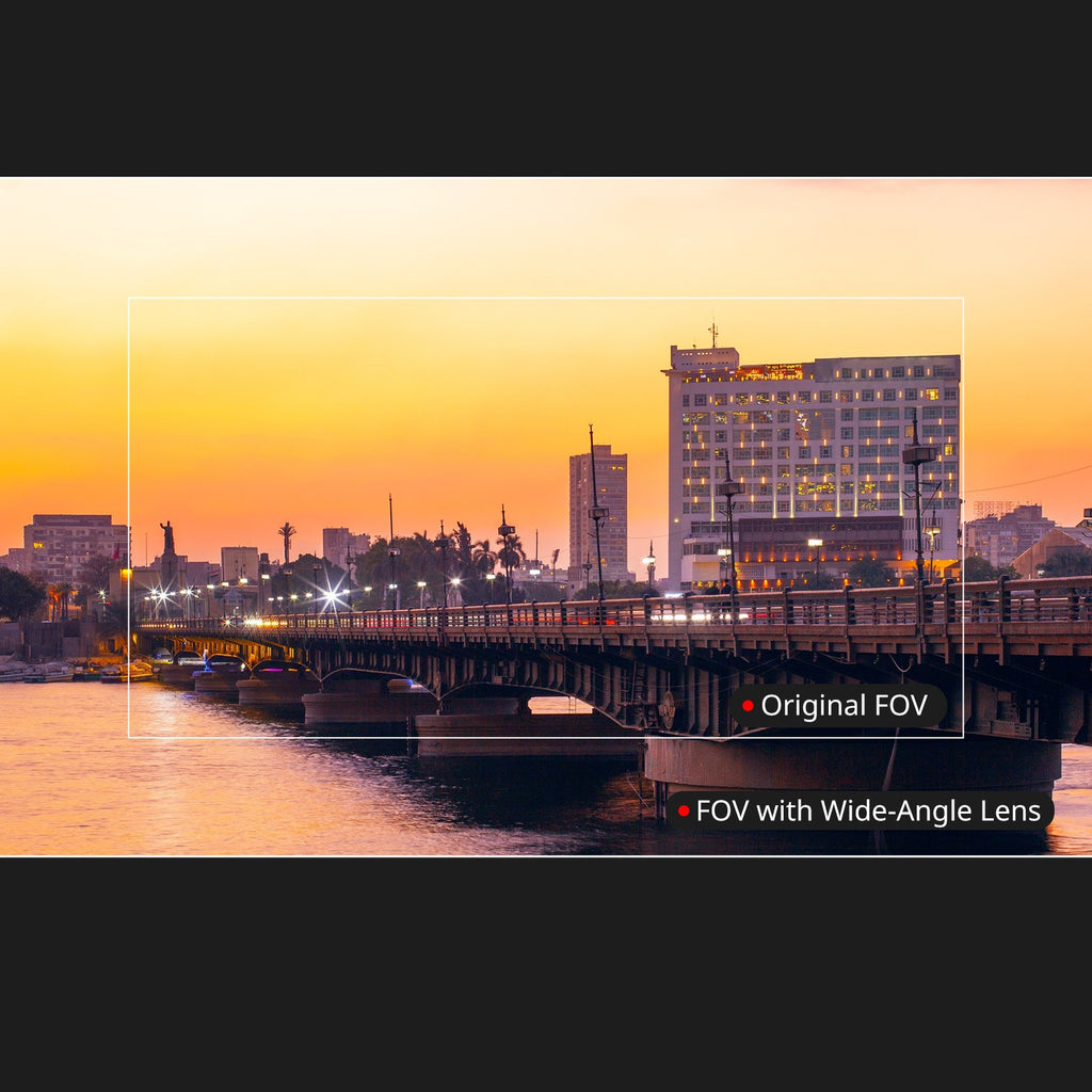 - Reduces focal length to 0.72x while expanding angle of view to 112°.