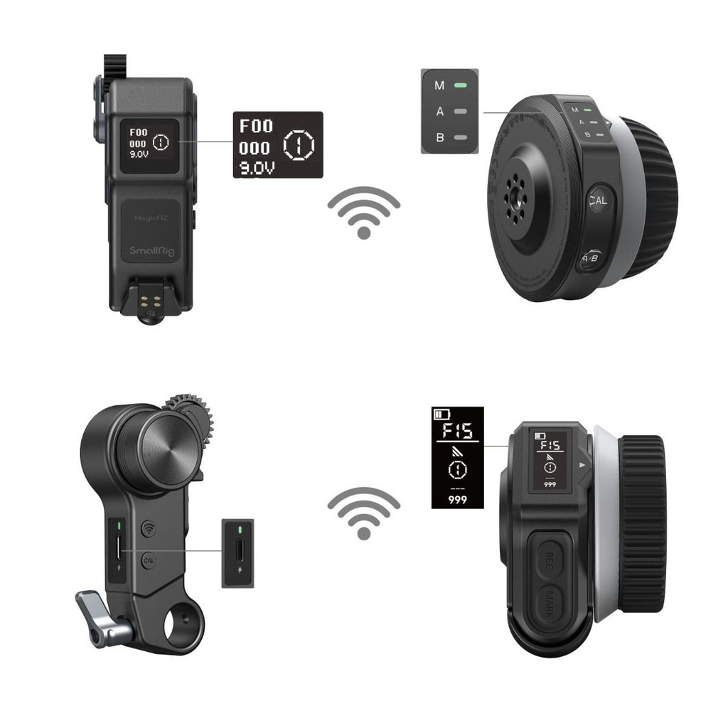 SmallRig Wireless Handwheel Controller (Lite) 4295 features a memory storage function, eliminating the need to recalibrate lens travel and AB point settings in case of power loss, enhancing shooting efficiency. Equipped with a built-in 1400mAh battery, this device provides approximately 21 hours of extended usage. It features light indicators and clear iconography, using red and blue lights to indicate connection status and channels (blue light - F00-1; green light - F15-1), offering intuitive and user-friendly operation guidance for simple and efficient control. Constructed with sweat-resistant, non-slip silicone material, the focus wheel ensures a comfortable and stable damping focus experience in various temperature conditions.