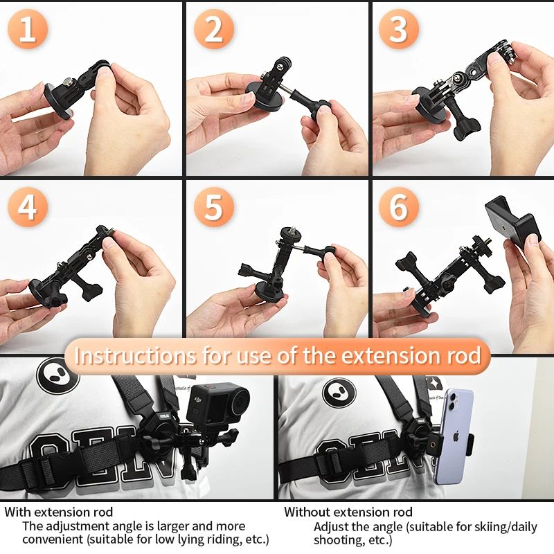 - Chest Strap Harness with J Hook and Screw: Easy to capture immersive video and photo footage from your chest