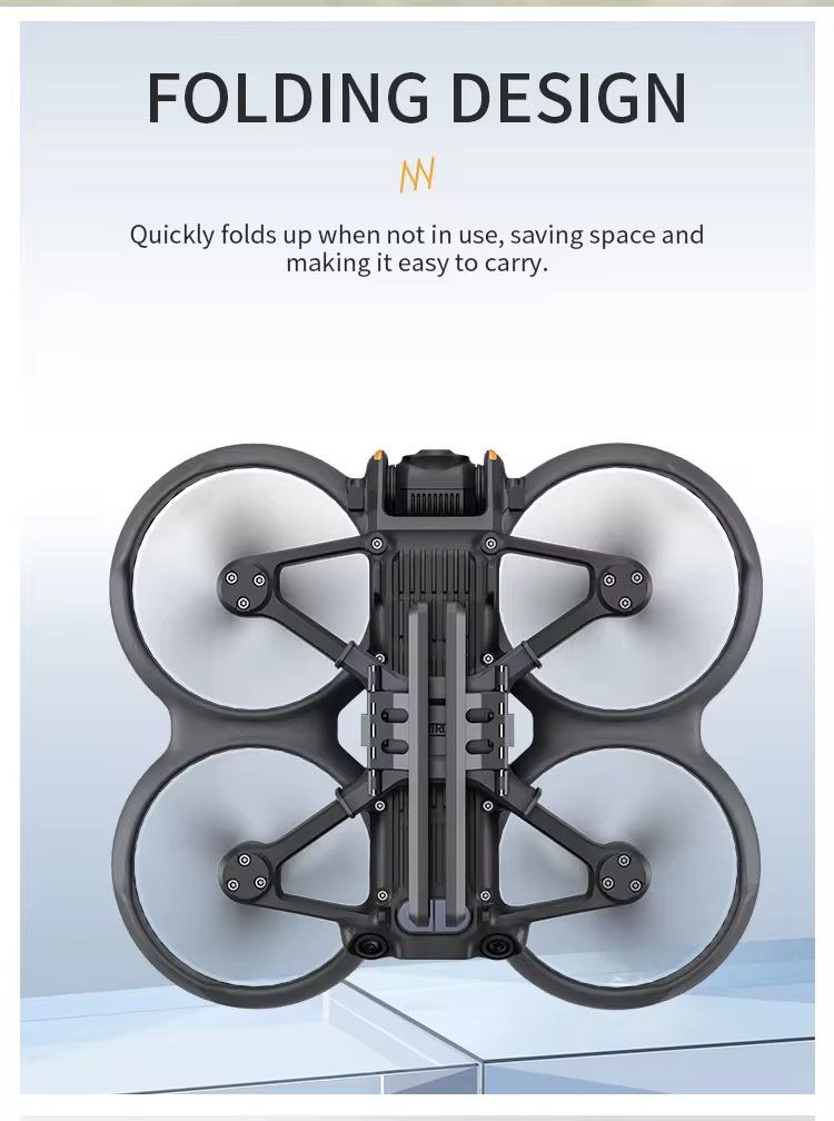 - Lightweight design, the weight of the entire landing gear is only 13.5g, and the lightweight design will not add extra burden to the flight of AVATA 2, and will not shake or fall off during the flight.