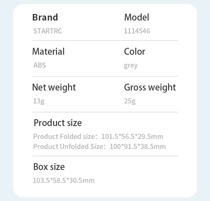 Product Folded Size: 101.5mm x 56.5mm x 29.5mm