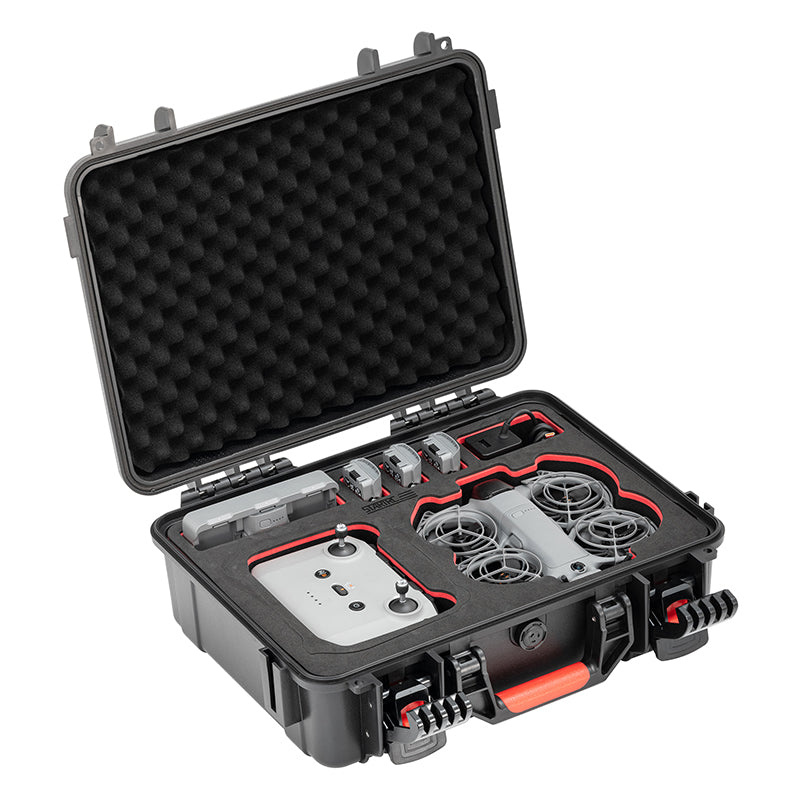 - Precision-Cut Foam Interior — Custom-engineered compartments securely hold the DJI Neo 2 drone, remote controller, batteries, charging hub, and cables.
