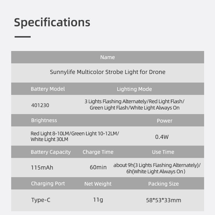 SUNNYLIFE 3 COLOURS / 4 MODES DRONE STROBE LIGHT