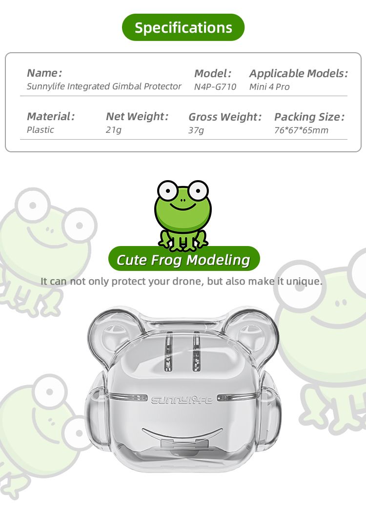 - Cute Frog Modeling: it can not only protect your drone, but also make it unique.