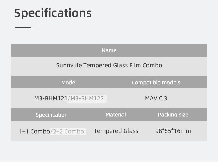 SUNNYLIFE LENS PROTECTIVE FILM FOR DJI MAVIC 3 (1 SET)