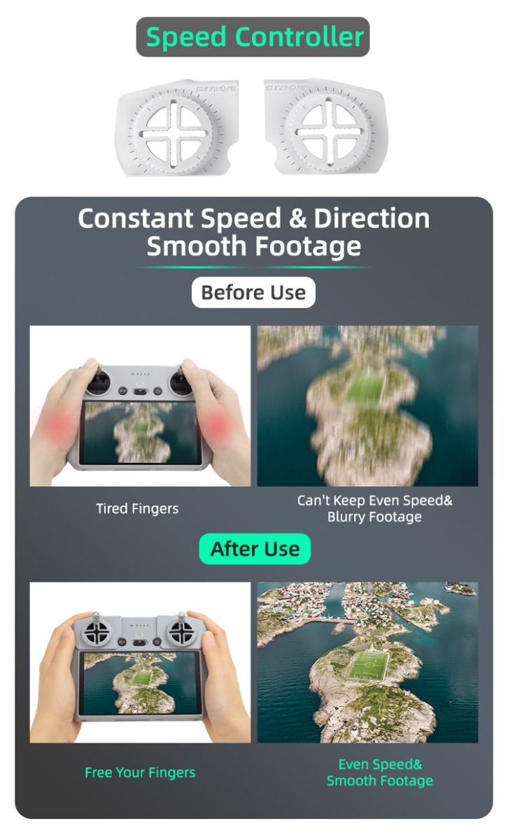 - 4 gears adjustable and 360° rotatable, thus fly angle of drone can be freely and precisely controlled.