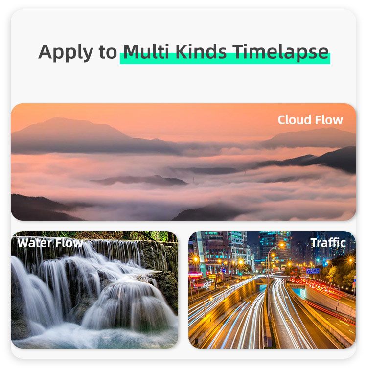 - Apply to multi kinds of timelapse like cloud flow, water flow and traffic.