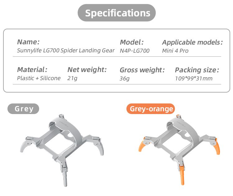 SUNNYLIFE SPIDER LANDING GEAR EXTENSIONS FOR MINI 4 PRO (GREY)