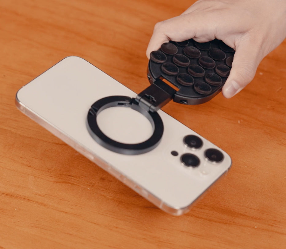 - Three modes for versatile use: suction cup mount, magnetic stand, or desktop holder