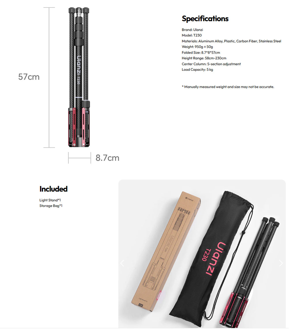 ULANZI T230 REVERSIBLE LEG LIGHT STAND T145